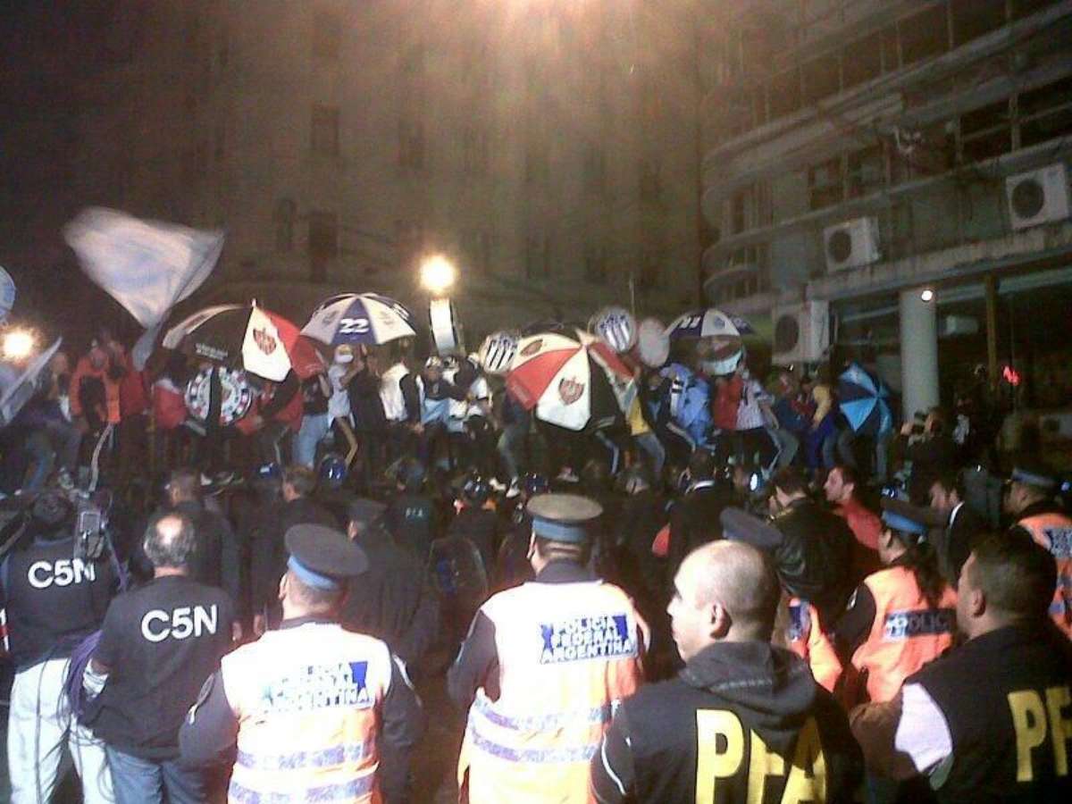 Segundo informações da imprensa argentina, os torcedores começaram a insultar Julio Grondona, presidente da entidade, atiraram rojões e cantaram o hino nacional em frente ao prédio. Após isso, 11 membros do grupo conseguiram entrar no edifício e entregar uma carta com todas as solicitações.