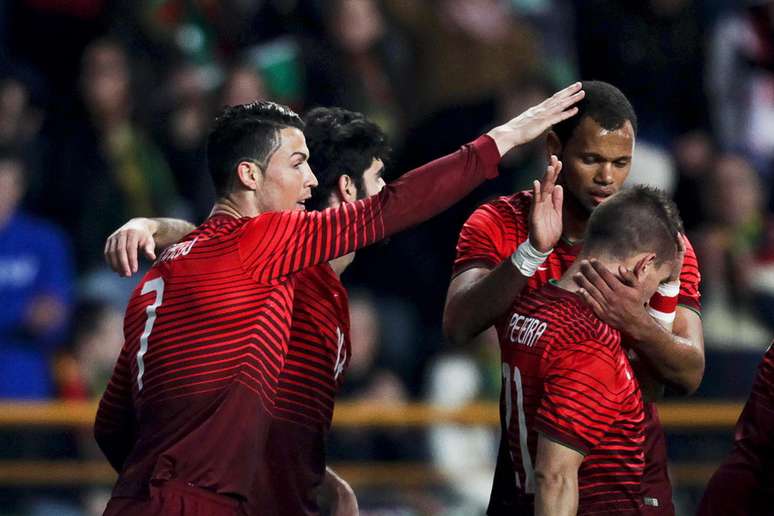 No amistoso desta quarta-feira, Portugal inaugurou o marcador aos 20min, em um belo contra-ataque iniciado por Cristiano Ronaldo. O melhor jogador do mundo acionou na intermediária o meia João Moutinho, que rolou para o lateral direito João Pereira cruzar rasteiro, na entrada da área, para Ronaldo dominar, se livrar de um marcador e marcar o primeiro da partida.