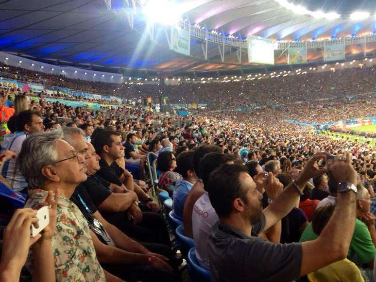 Usando suas contas do Facebook e Twitter, o compositor Caetano Veloso postou uma foto em que aparece no Estádio do Maracanã, no Rio de Janeiro, acompanhando o confronto entre Argentina e Bósnia, em partida realizada no último domingo.