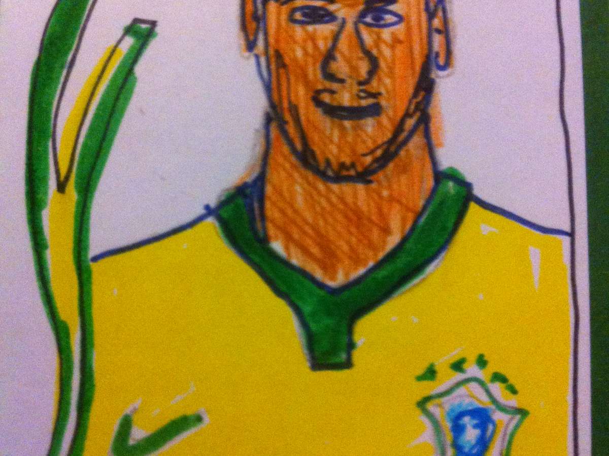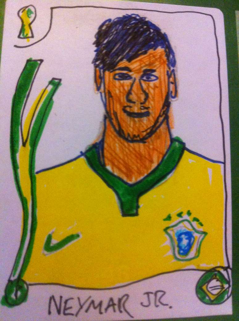 Entre os jogadores brasileiros, nomes como Neymar, David Luiz e Willian já foram retratados. As figurinhas prateadas, como escudos, também estão presentes – os desenhos são feitos em papel sulfite e recortados antes de serem colados em papel alumínio.
