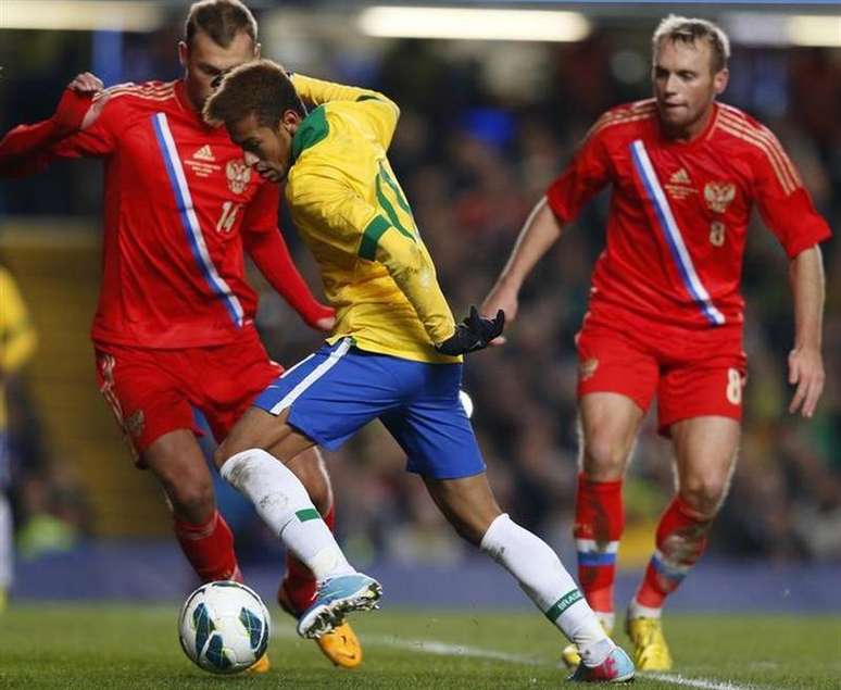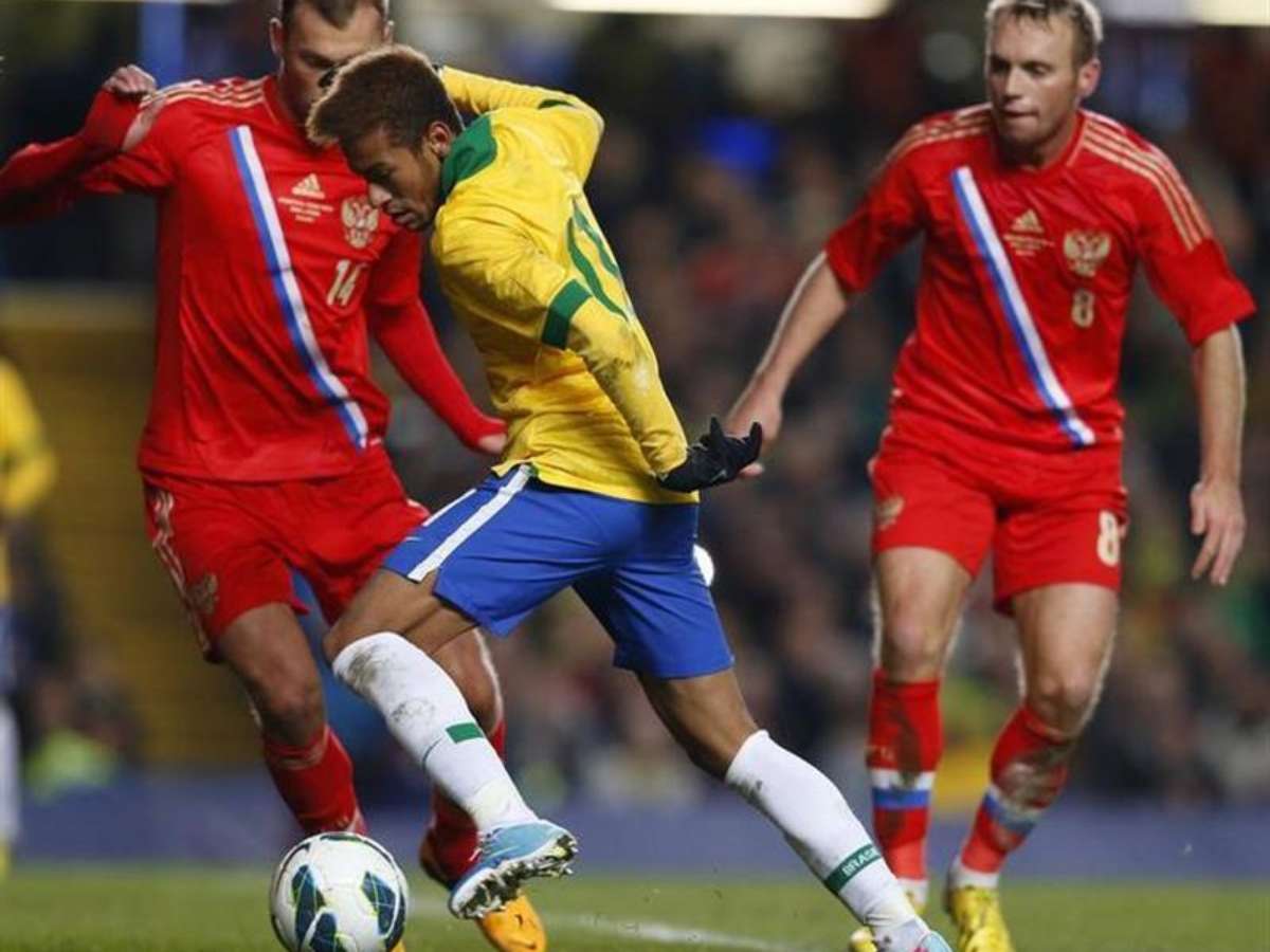 Neymar cai em lance faltoso no confronto com os russos