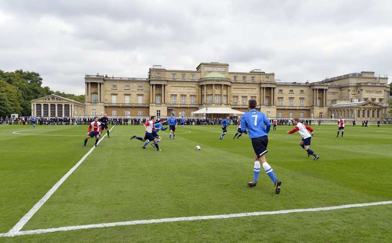 PUBLICIDADE Capa Esportes Futebol Copa 2014 Terra na Copa Times Selecione o time para ver as notícias Com príncipe em campo, Palácio de Buckingham recebe 1º jogo na história Compartilhar O Palácio de Buckingham, casa da família real britânica, recebeu nesta segunda-feira a primeira partida de futebol de sua história Foto: AP O Palácio de Buckingham, casa da família real britânica, recebeu nesta segunda-feira a primeira partida de futebol de sua história Foto: AP O jogo faz parte das comemorações dos 150 anos da Football Association (FA), entidade que rege o futebol britânico Foto: AP Evento contou com a presença do Príncipe William, herdeiro da coroa britânica Foto: AP O jogo contou com a presença do Polytechnic F.C., clube fundado em 1873 e que atualmente joga em nível amador Foto: Getty Images A outra equipe envolvida foi o Civil Service F.C., que fez parte da primeira reunião para a criação da FA, em 1863 Foto: AP A partida teve como árbitro Howard Webb, juiz que apitou a final da Copa do Mundo de 2010 Foto: AP O campo foi montado em frente ao Palácio de Buckingham Foto: EFE Príncipe William participa da partida e mostra sua técnica Foto: Getty Images Intervalo contou com reidratação e laranjas Foto: Getty Images Funcionário prepara gramado para a partida entre Polytechnic F.C. e Civil Service F.C. Foto: Getty Images Compartilhar Publicidade Compartilhar TAGS Campeonato Inglês Terra na Copa Esportes Futebol Publicidade