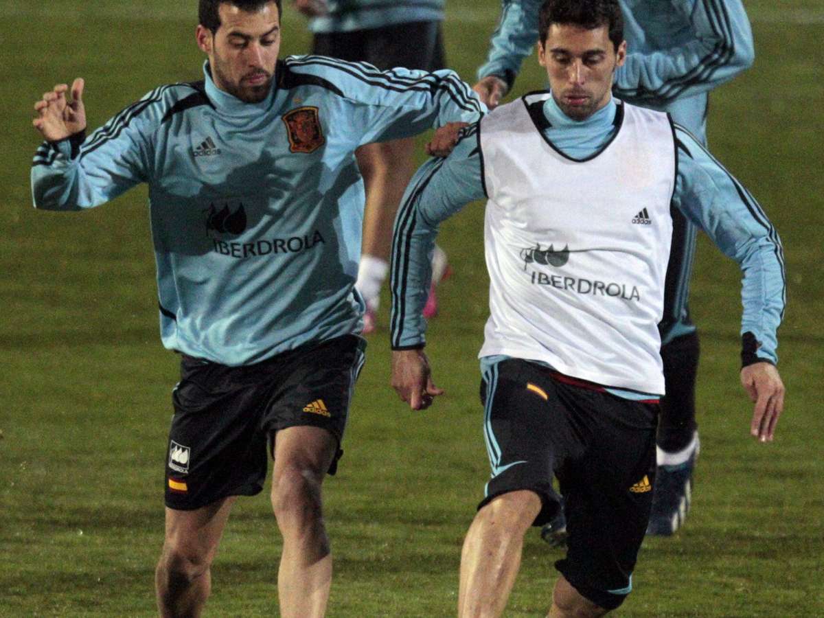 Alonso, do Real Madrid, e Busquets, do Barcelona, começaram normalmente o treino da Espanha, correndo em torno do campo e fazendo alguns outros exercícios físicos. No momento do treinamento com bola, porém, deixaram o gramado. Del Bosque armou jogo de dez contra dez sem os dois atletas.