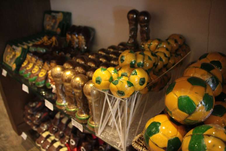 Para ampliar vendas e aproveitar o movimento de turistas, produtos ganharam forma de bolas e chuteiras de futebol