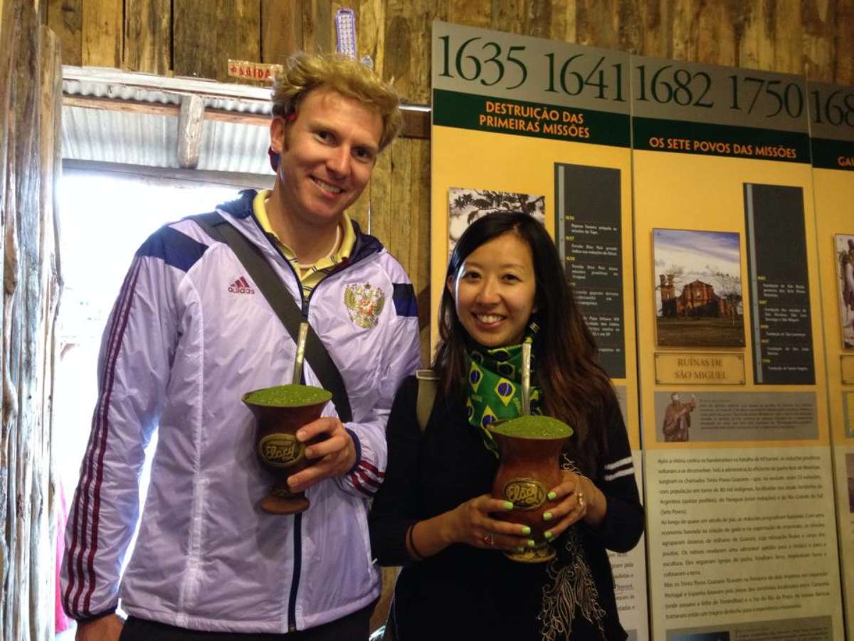 “É quente? É alcoólico? Tem quantos tipos de erva?”, perguntam Erick e Felicia Lee sobre a bebida dos gaúchos, o famoso chimarrão. Um pouco receosos, o casal de San Francisco, na Califórnia, prova a bebida pela primeira vez. Depois do primeiro gole, sorrisos surgem na boca. “Parece chá”, comenta Erik, “lembra uma bebida japonesa”, diz Felicia que tem ascendência asiática.