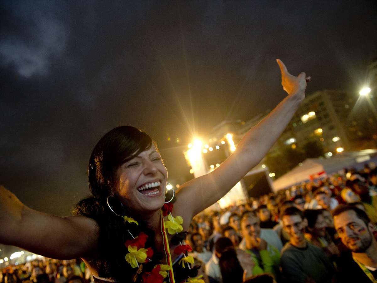 Enquanto as seleções de Alemanha e Gana jogavam na Arena Castelão, em Fortaleza, os torcedores dos dois países fizeram a festa nas areias de Copacabana, no Rio de Janeiro; eles vibraram e sofreram assistindo ao jogo que terminou em 2 a 2.