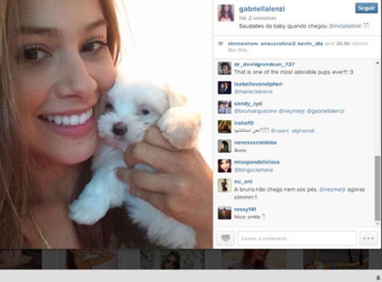 Gabriella Lenzi abastece o seu Instagram com bastante frequência e já foi personagem de uma reportagem da revista Esquire, que a chamou de “a mulher que amamos no Instagram”.