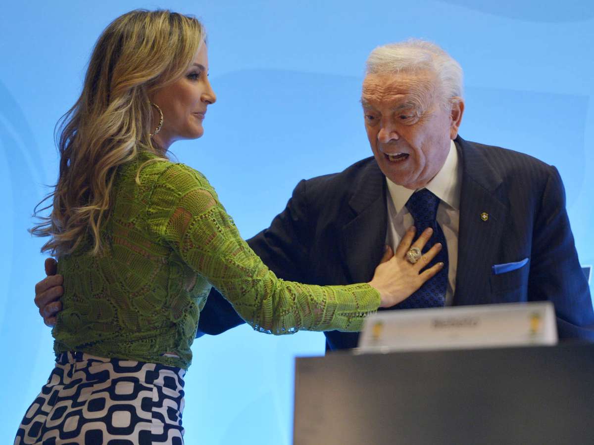 Claudia Leitte é cumprimentada por José Maria Marin, presidente da CBF e do Comitê Organizador Local