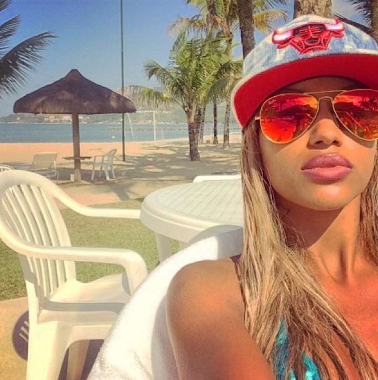 Na foto, Neguesha aparece usando um boné do time de basquete americano Chicago Bulls e óculos espelhado.