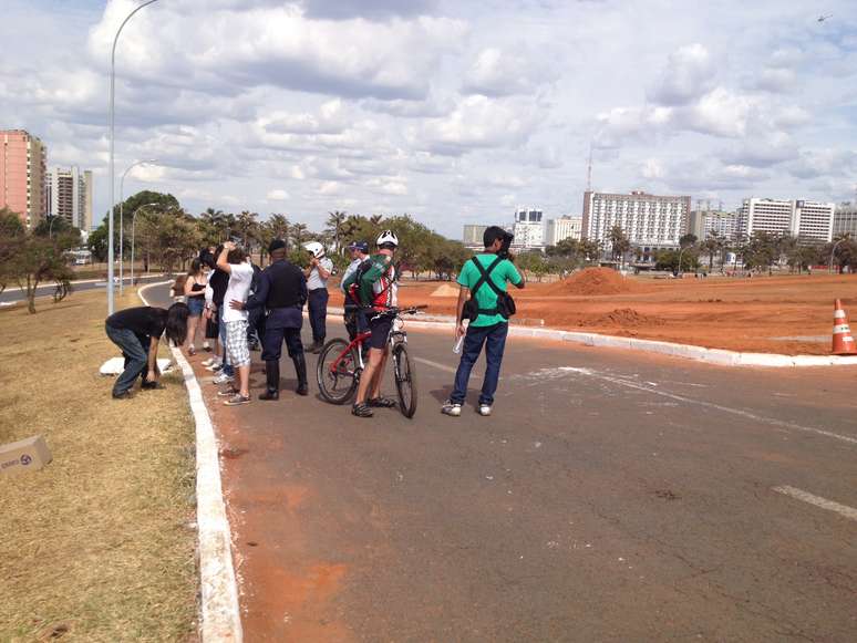 Por volta das 14h30, manifestantes conseguiram furar parte do bloqueio formado no eixo monumental e chegaram à altura da Torre de TV, nas proximidades do Mané Garrincha. O batalhão de choque disparou bombas de gás para afastar e dispersar os manifestantes. Segundo a rádio CBN, cerca de 100 pessoas furaram o bloqueio. Depois do ocorrido, até pessoas que aparentemente não estavam indo ao estádio foram revistadas.
