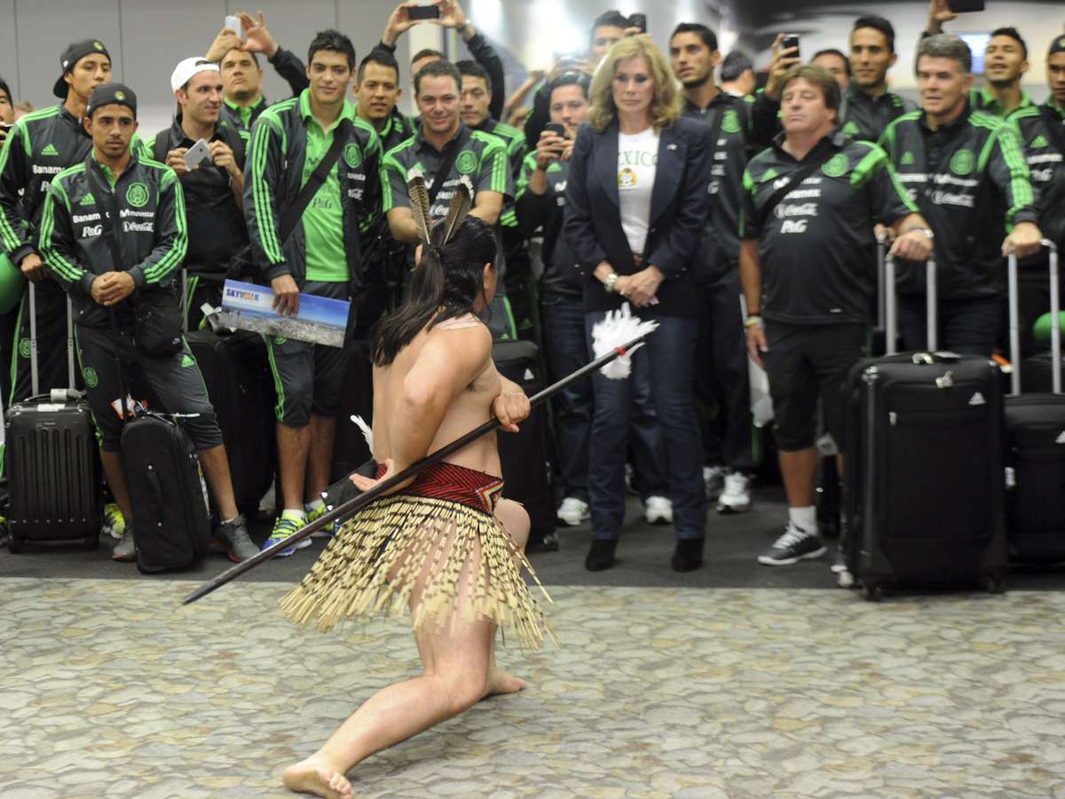 Delegação mexicana foi surpreendida na chegada à Nova Zelândia por uma apresentação Maori de boas-vindas - a seleção enfrenta os neozelandeses pela repescagem para a Copa do Mundo de 2014, no Brasil