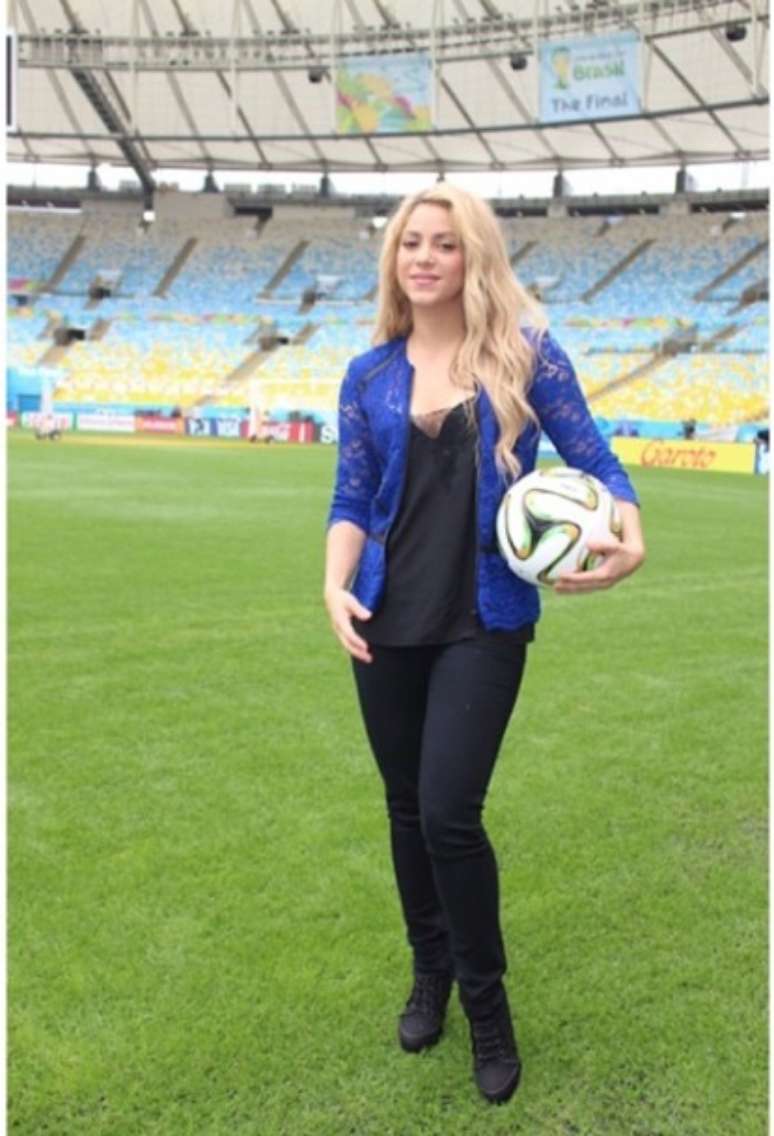 Com a Brazuca nas mãos, a bola oficial da Copa, a cantora Shakira postou uma foto na tarde deste sábado em seu perfil no Instagram em que aparece no gramado do Maracanã, no Rio de Janeiro. O estádio é palco neste domingo da grande final do Mundial entre Alemanha e Argentina.