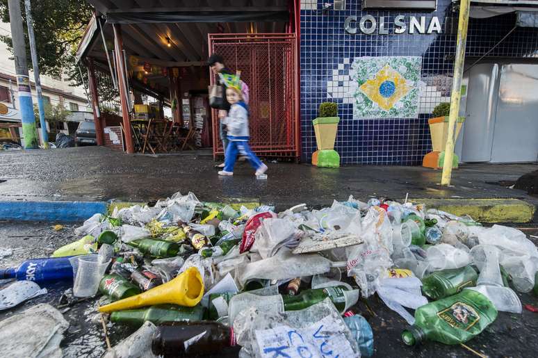 Nesta sexta-feira, dia seguinte à vitória do Brasil no jogo de estreia da Copa do Mundo, sobre a Croácia, o bairro da Vila Madalena, zona oeste de São Paulo, amanheceu com excesso de lixo. Os pedestres foram obrigados a desviar dos detritos nas calçadas e a enfrentar o mau cheiro. Nesta manhã, equipes de limpeza chegaram à região, que foi um dos principais pontos de encontro para assistir à partida, para remover o lixo
