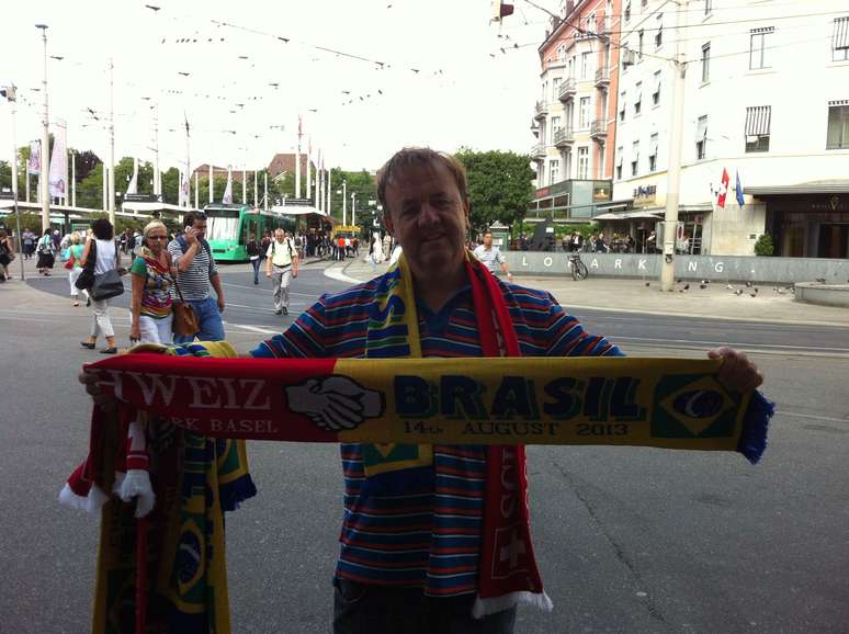 Discutir o preço de uma mercadoria não é um hábito lá muito comum aos europeus, mas o suíço Julian, vendedor de cachecóis, já aprendeu como funciona no Brasil. A algumas horas do amistoso entre a Suíça e a Seleção Brasileira na tarde desta quarta-feira (15h45 de Brasília), em Basileia, o senhor ambulante discute quanto deve ser pago por seu produto, que comemora o duelo entre suíços e brasileiros. Como se estivesse na 25 de Março, em São Paulo, ou em qualquer outro comércio de rua brasileiro.