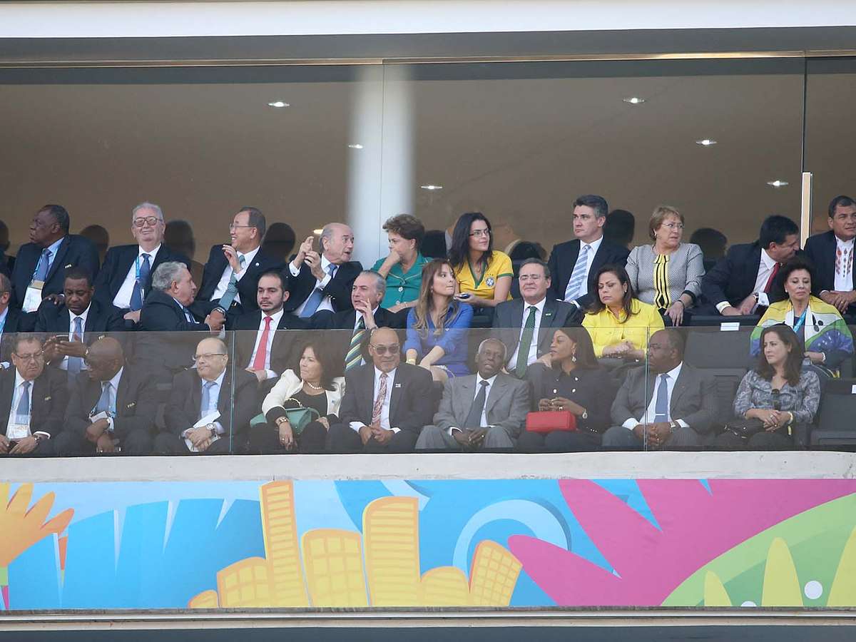Xingamentos à presidente da República já haviam sido ouvidos do lado de fora do estádio. Um torcedor, inclusive, chegou a pegar o megafone de um dos voluntários, que serve para orientar o público, e gritou contra a presença de Dilma no estádio. A presidente voltaria a ficar no holofote depois do segundo gol de Neymar, marcado de pênalti. Ao aparecer a imagem dela no telão, os torcedores que comemoravam a virada brasileira, começaram a vaiar a cena em que aparecia a presidente.