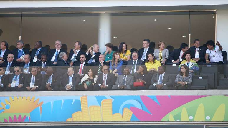 A presidente Dilma Rousseff e o presidente da Fifa, Joseph Blatter, assistem à cerimônia de abertura da Copa do Mundo