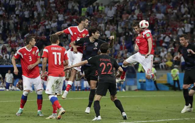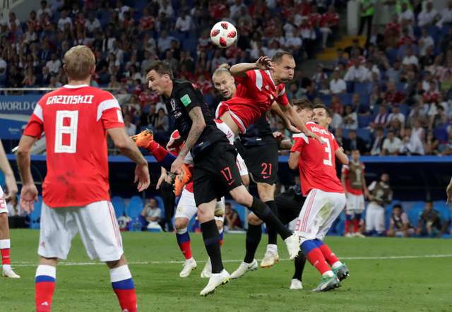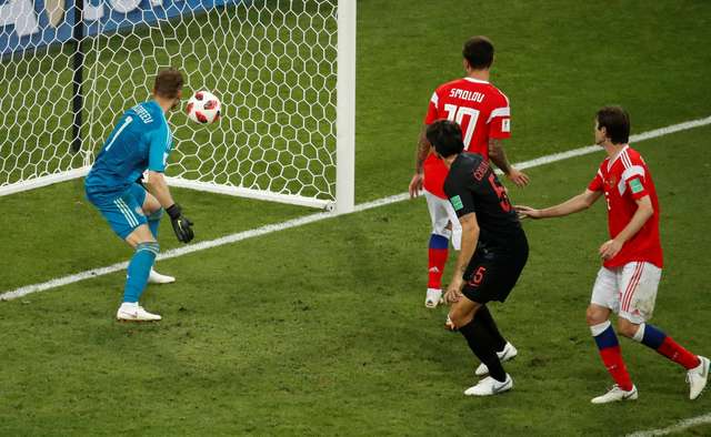 Kramaric recebe cruzamento de Mandzukic e manda para o fundo do gol: a Croácia empata o jogo. (Foto: Christian Hartmann/Reuters)