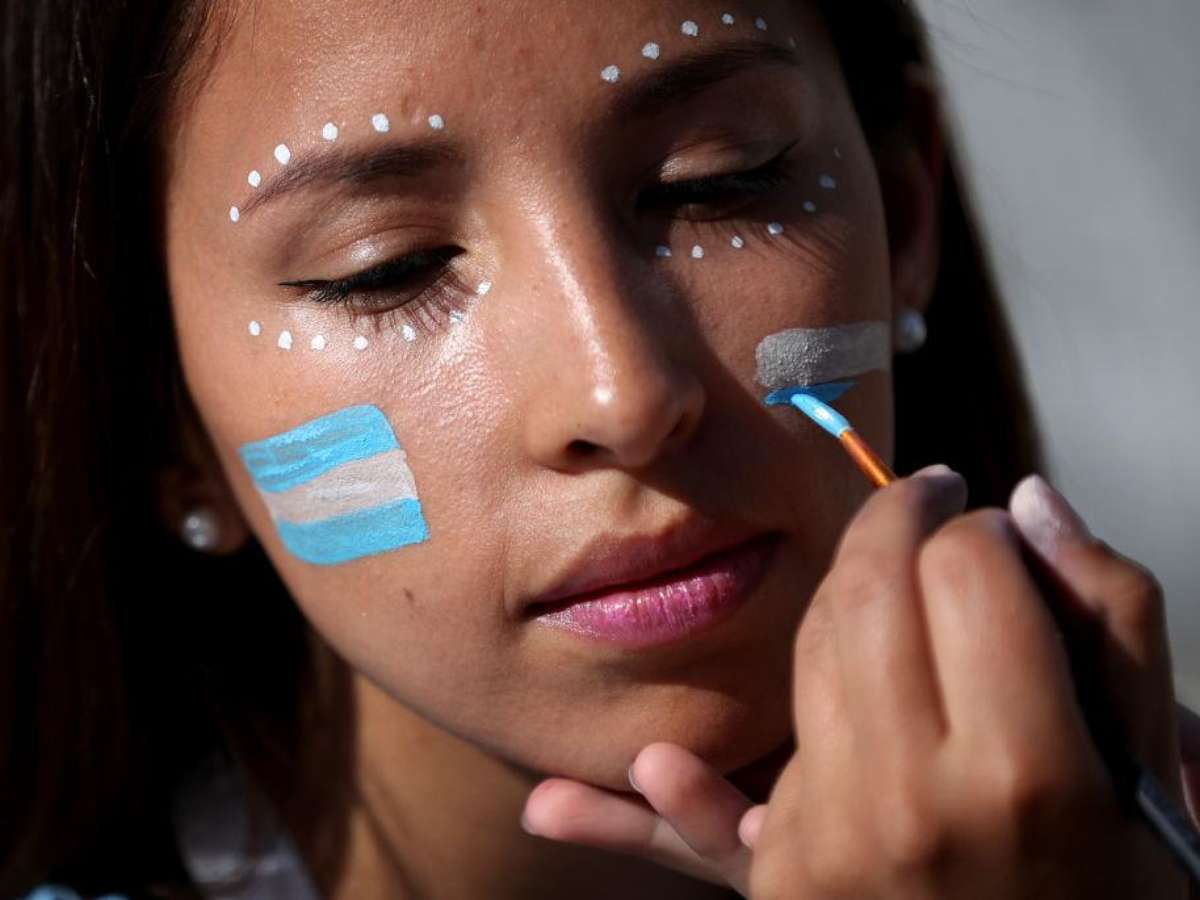 Torcedores enfeitam arquibancadas de Argentina x Islândia