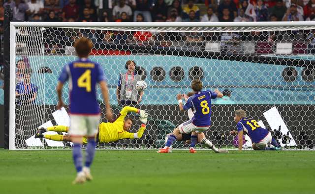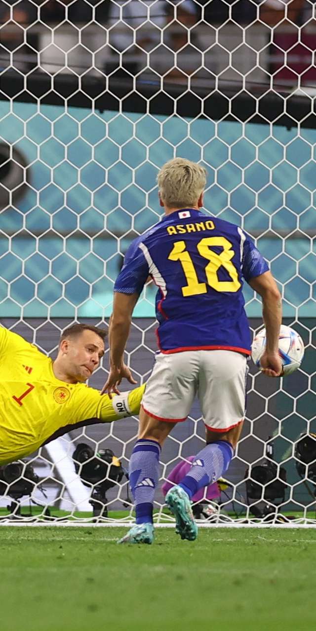 Gol! Alemanha 1, Japão 2. Takuma Asano (Japão) finalização com o pé direito de um ângulo dificil da direita acertando no centro do gol. Assistência de Ko Itakura N. (FOTO: Reuters/Kai Pfaffenbach)