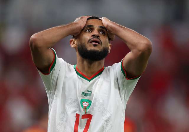Oportunidade perdida Noussair Mazraoui (Morocco), finalização com o pé direito de fora da área.