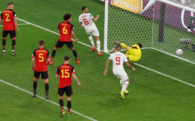 Gol! Bélgica 0, Morocco 2. Zakaria Aboukhlal (Morocco) finalização com o pé direito do meio da área no ângulo superior direito. Assistência de Hakim Ziyech. Foto: Reuters/Amanda Perobelli