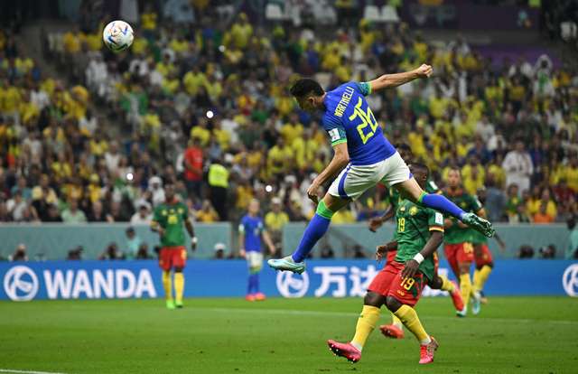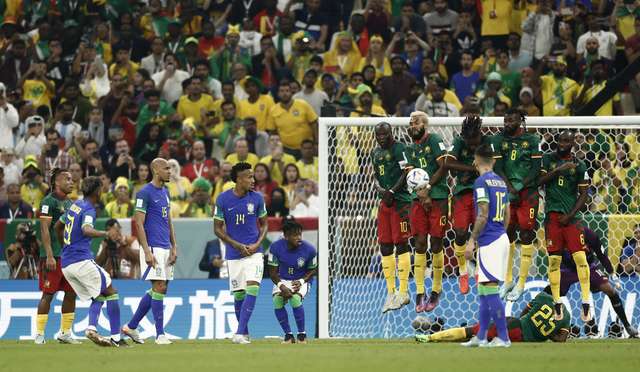 ESCALAÇÃO DE CAMARÕES: Equipe entra em campo com Devis Epassy, Christopher Wooh, Collins Fai, Enzo Ebosse, Nouhou Tolo, Moumi Ngamaleu, Frank Anguissa, Eric Choupo-Moting, Pierre Kunde, Bryan Mbeumo e Vincent Aboubakar.