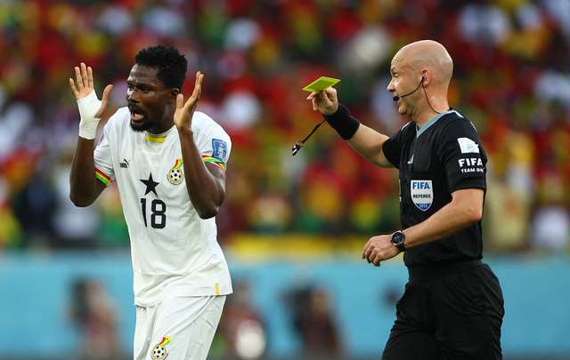 Daniel Amartey, de Gana, reclama ao receber cartão amarelo do árbitro Anthony Taylor. Foto: Reuters/Kim Hong-Ji