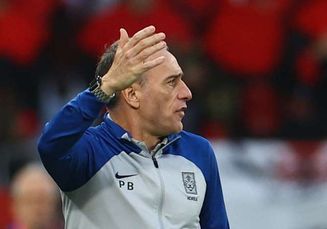Técnico da Coreia do Sul, Paulo Bento, segue tenso com o andamento da partida. Foto: Reuters/Molly Darlington