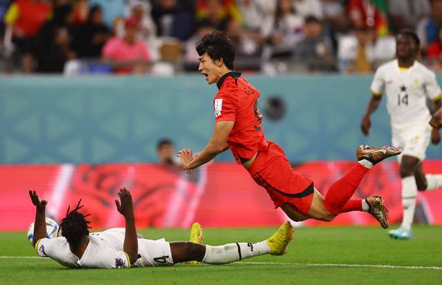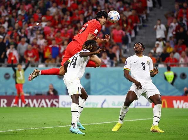 Gol! Coreia do Sul 1, Gana 2. Cho Gue-Sung (Coreia do Sul) de cabeça do meio da área para o centro do gol. Assistência de Lee Kang-In com um cruzamento. Foto: Reuters/Kim Hong-Ji