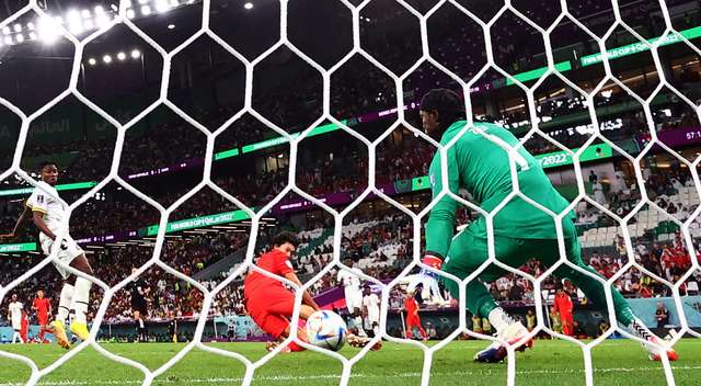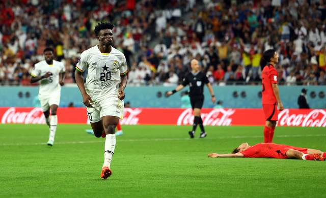 Gol! Coreia do Sul 2, Gana 3. Mohammed Kudus (Gana) finalização com o pé esquerdo do meio da área para o centro do gol. Assistência de Iñaki Williams. Foto: Reuters/Molly Darlington