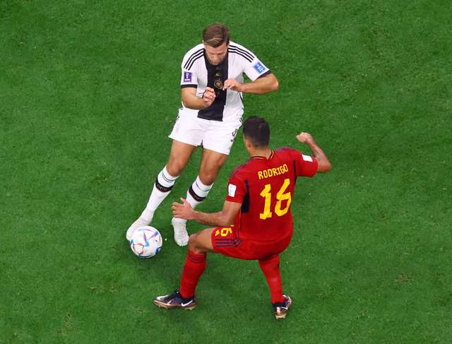 ESCALAÇÃO DA ALEMANHA: Os jogadores escolhidos para enfrentar a Espanha são Manuel Neuer, Antonio Rudiger, David Raum, Thilo Kehrer, Niklas Sule, Joshua Kimmich, Leon Goretzka, Ilkay Gundogan, Serge Gnabry, Thomas Muller e Jamal Musiala.