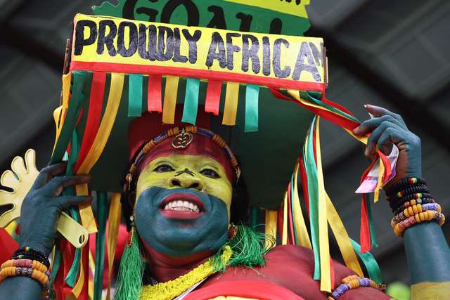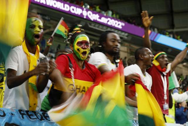 Torcedores de Gana mantém animação no estádio. O país perde de 2 a 0 para o Uruguai. (FOTO: John Sibley/Reuters)