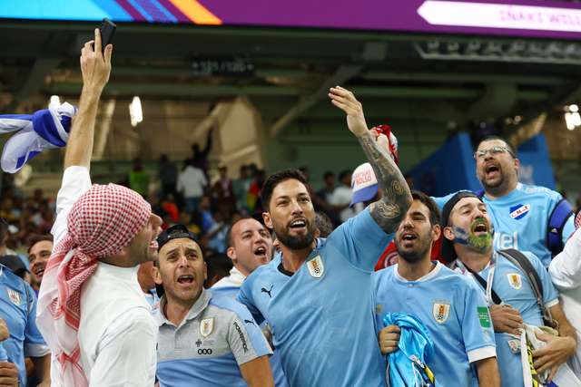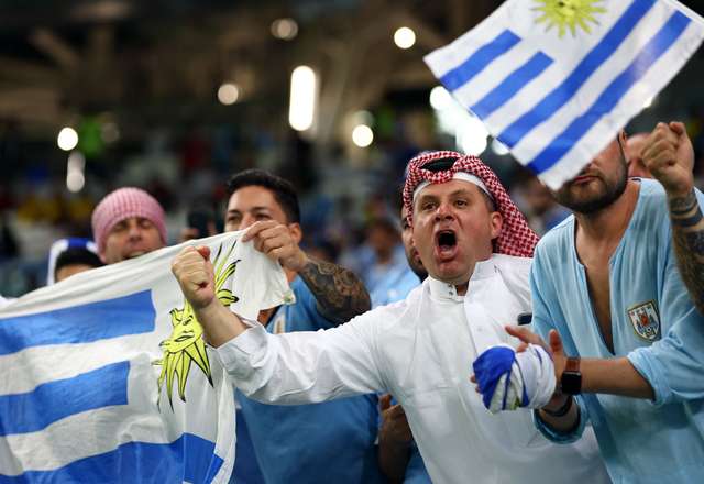 Torcedores do Uruguai durante o jogo contra Gana. (Foto: Bernadett Szabo/Reuters)