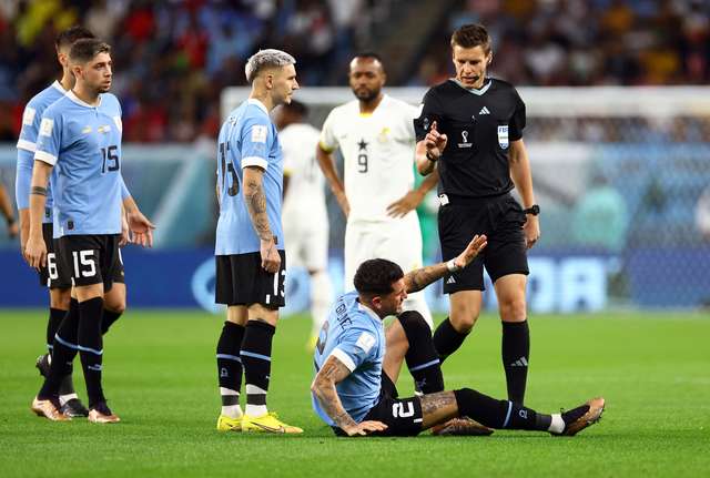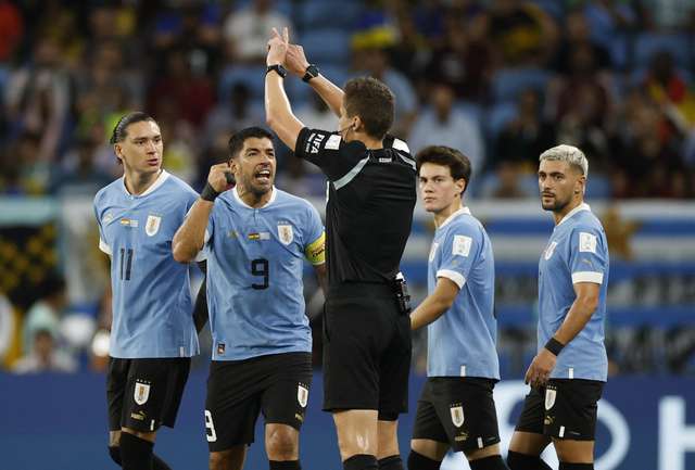 Darwin Núñez (Uruguai) recebe cartão amarelo.