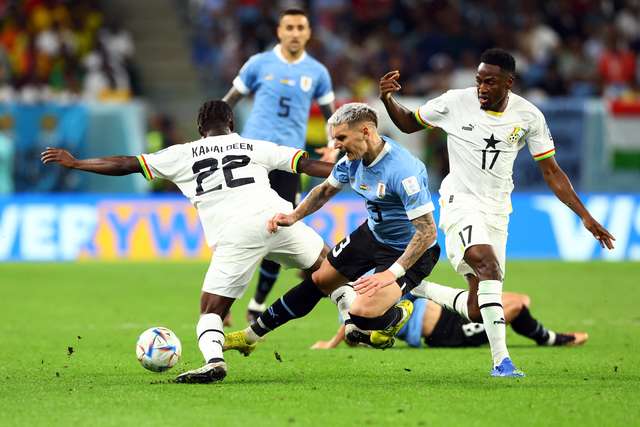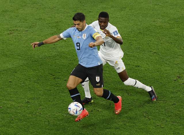 Giorgian de Arrascaeta comemora o segundo gol contra Gana. (FOTO: Albert Gea/Reuters)