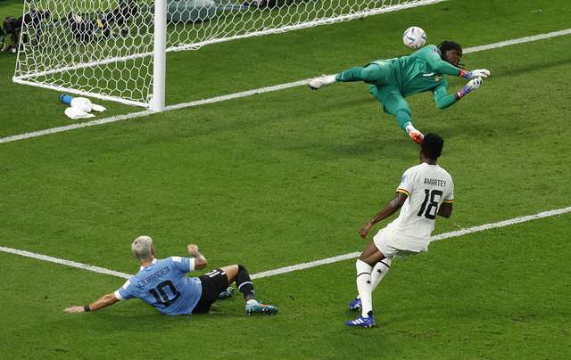 Pênalti defendido! André Ayew (Gana) perdeu uma oportunidade única, finalização com o pé esquerdo defendido junto ao lado inferior direito do gol. (FOTO: John Sibley/Reuters)