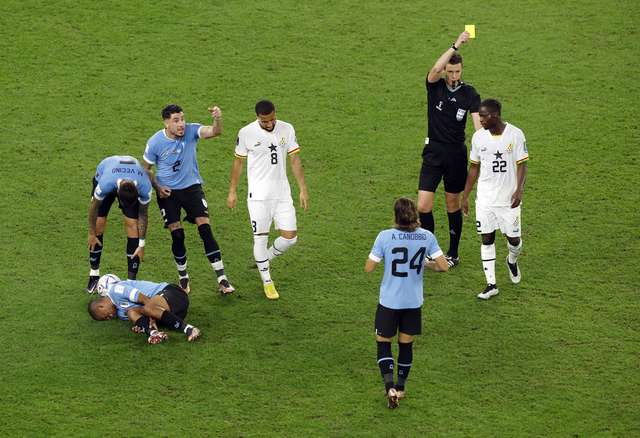 Conferindo o VAR: Gana Pênalti. (FOTO: John Sibley/Reuters)