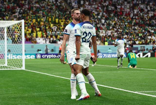 PRIMEIRO TEMPO - O confronto foi bem equilibrado nos primeiros 45 minutos e quando Senegal começou a gostar do jogo, ele apareceu: Jude Bellingham. O jovem de 19 anos começou o seu show ao fazer boa jogada individual e deixar Henderson livre na área para marcar o primeiro gol inglês. Logo depois, nos minutos finais, o camisa 22 roubou a bola no meio-campo, acionou Foden, que deu linda assistência para Harry Kane ampliar para 2 a 0! (Foto: REUTERS/Marko Djurica)
