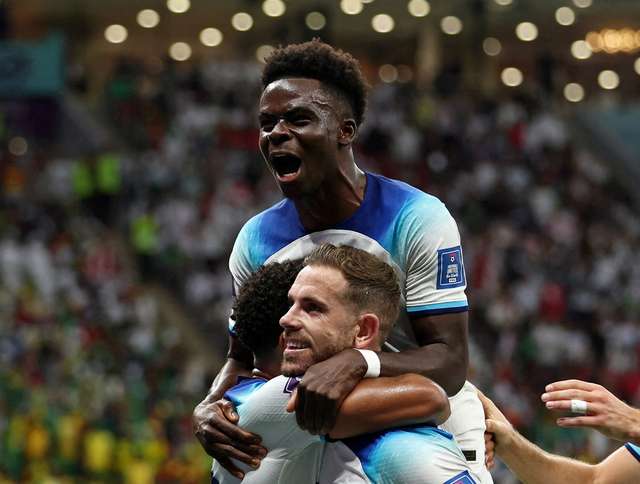 FIM DE PAPO! A Inglaterra contou com grande atuação dos garotos Jude Bellingham, Bukayo Saka e Phil Foden para bater Senegal por 3 a 0. Na primeira etapa, os ingleses abriram dois de vantagem e na etapa final, matou o confronto (Foto: REUTERS/Marko Djurica)