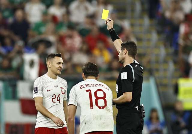 Falta cometida por Robert Lewandowski (Poljska). (FOTO: Hamad I Mohammed/Reuters)