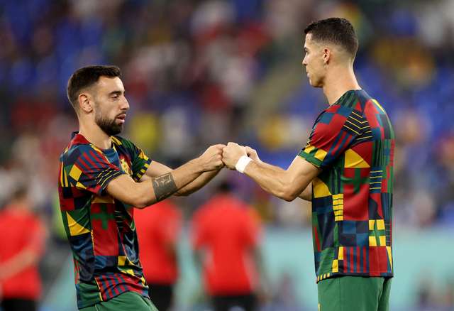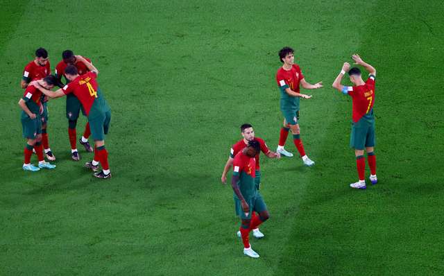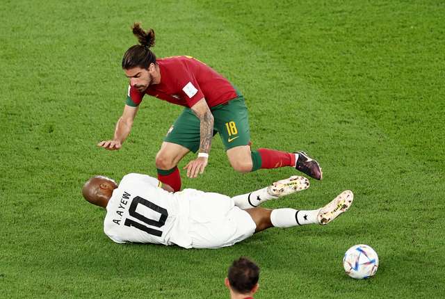 Gol! Portugal 3, Gana 1. Rafael Leão (Portugal) finalização com o pé direito do lado esquerdo da área no lado direito do gol. Assistência de Bruno Fernandes depois de um contra-ataque.Começou a partida! (Foto:Albert Gea/REUTERS)