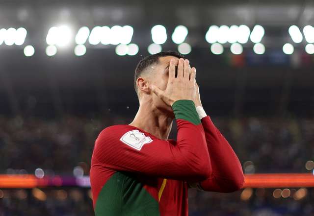 Oportunidade perdida Cristiano Ronaldo (Portugal), de cabeça do lado direito da pequena área. Assistência de Raphaël Guerreiro com um cruzamento após escanteio. (foto:Marko Djurica/REUTERS)