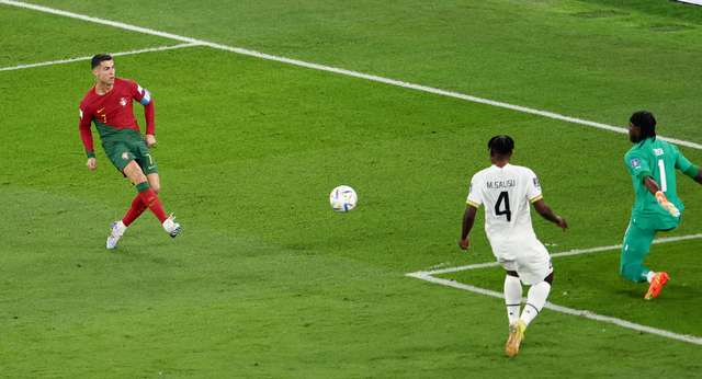 Gol! Portugal 2, Gana 1. João Félix (Portugal) finalização com o pé direito do lado direito da área para o centro do gol. Assistência de Bruno Fernandes.(Foto:Albert Gea/REUTERS)