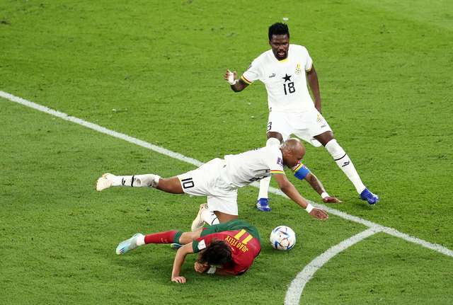 André Ayew (Gana) sofre uma falta no campo defensivo.
