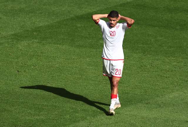 Finalização bloqueada, Mohamed Dräger (Tunisia) finalização com o pé direito do meio da área. Foto: Reuters/Marko Djurica