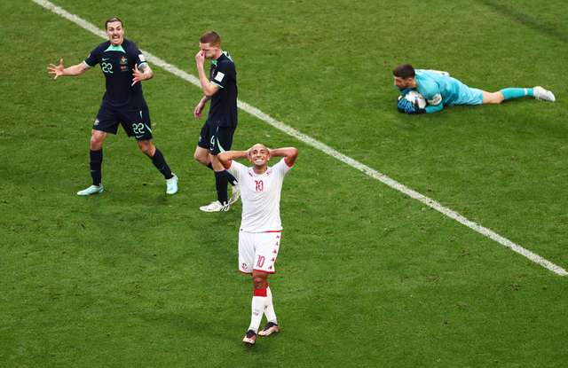 Fim do primeiro tempo, Tunisia 0, Austrália 1. Foto: Reuters/Marko Djurica