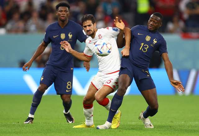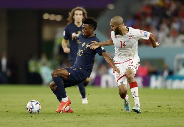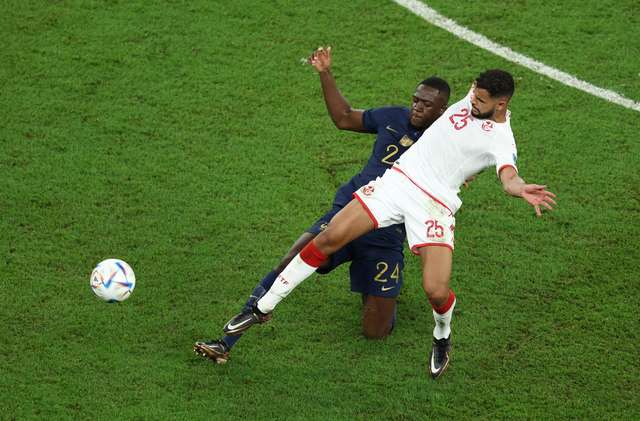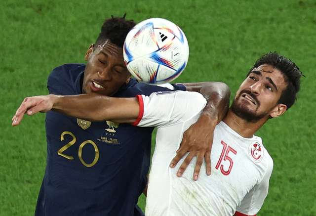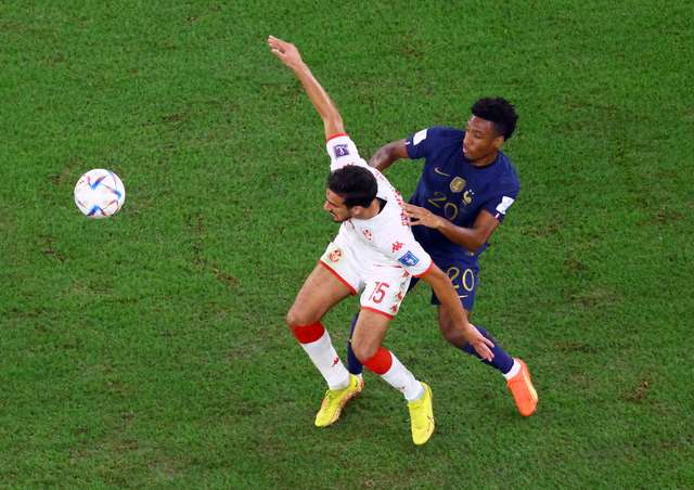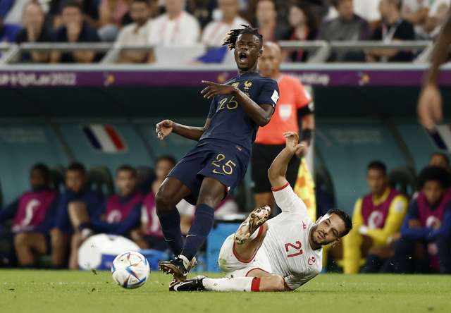 Falta cometida por Randal Kolo Muani (França).(Foto:Matthew Childs/REUTERS)