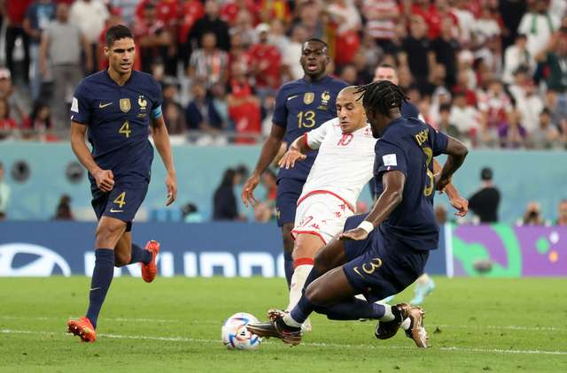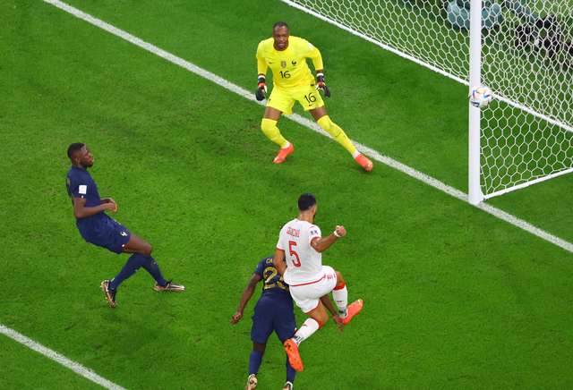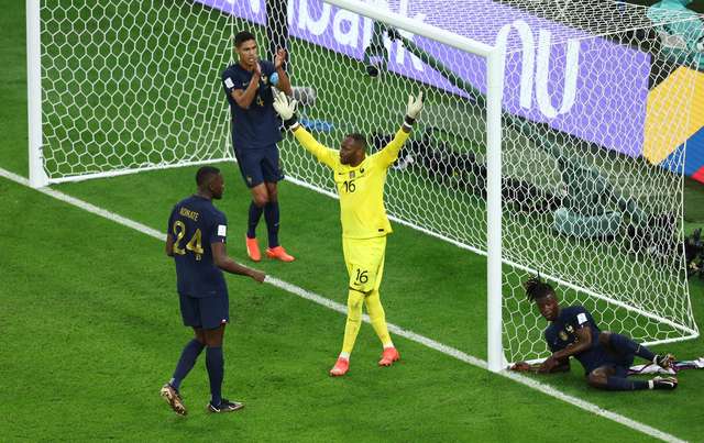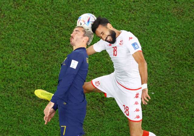 Finalização bloqueada, Axel Disasi (França) de cabeça do meio da área. Assistência de Antoine Griezmann com um cruzamento.(Foto:Carl Recine/REUTERS)
