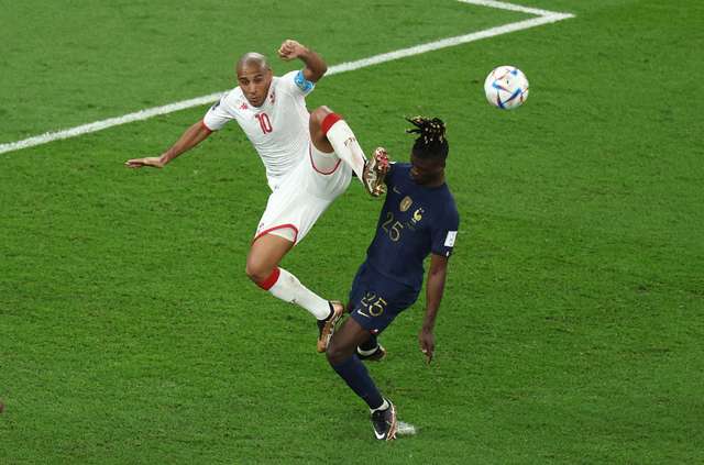 Gol! Tunisia 1, França 0. Wahbi Khazri (Tunisia) finalização com o pé esquerdo do meio da área no lado direito do gol. Assistência de Aïssa Laïdouni.(Foto:Carl Recine/REUTERS)