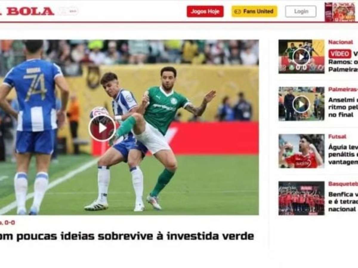 Um dos principais jornais de Portugal, 'A Bola' diz que empate sem gols foi um placar positivo para os Dragões e enalteceu a torcida palestrina